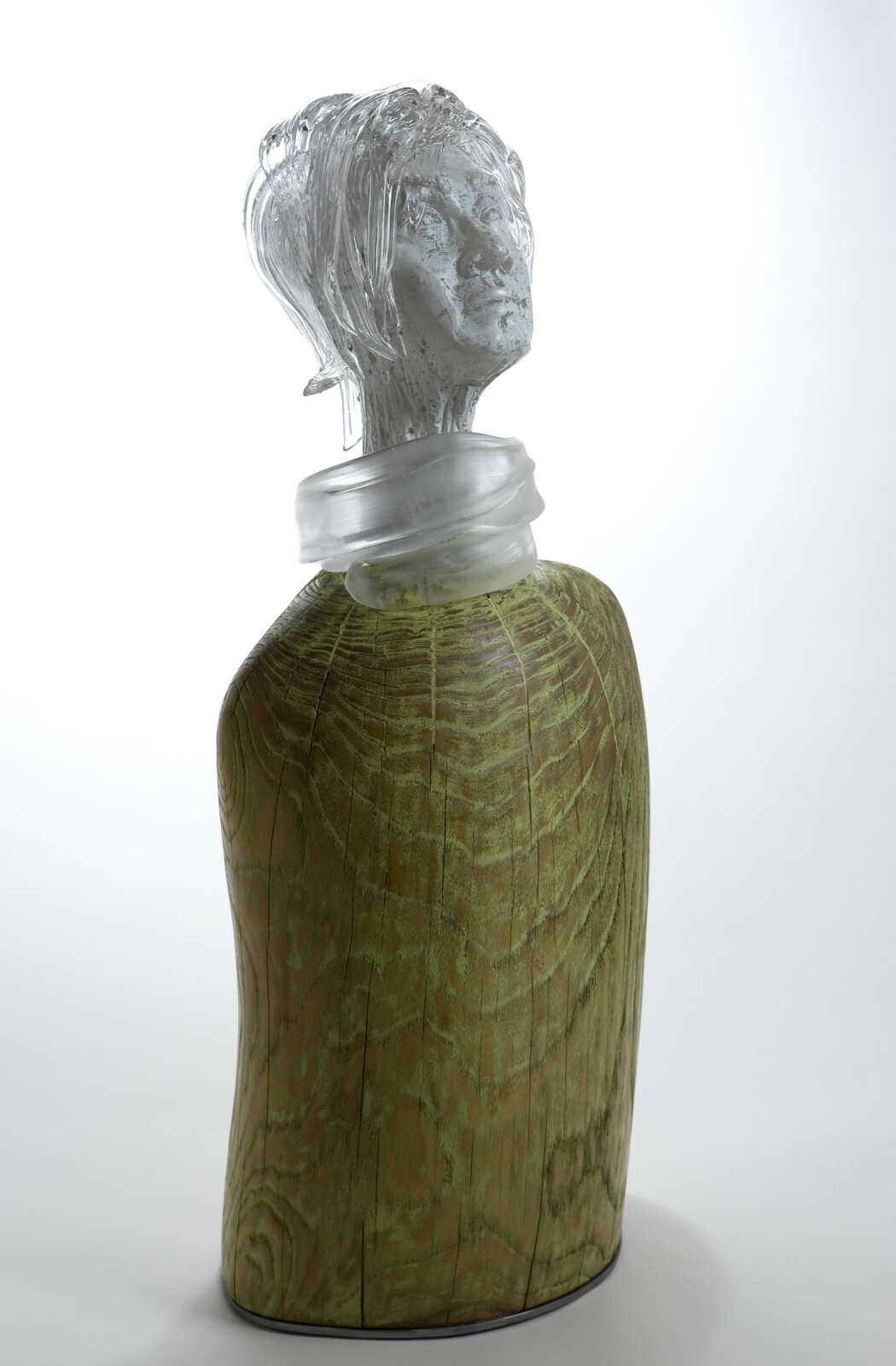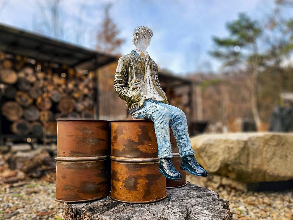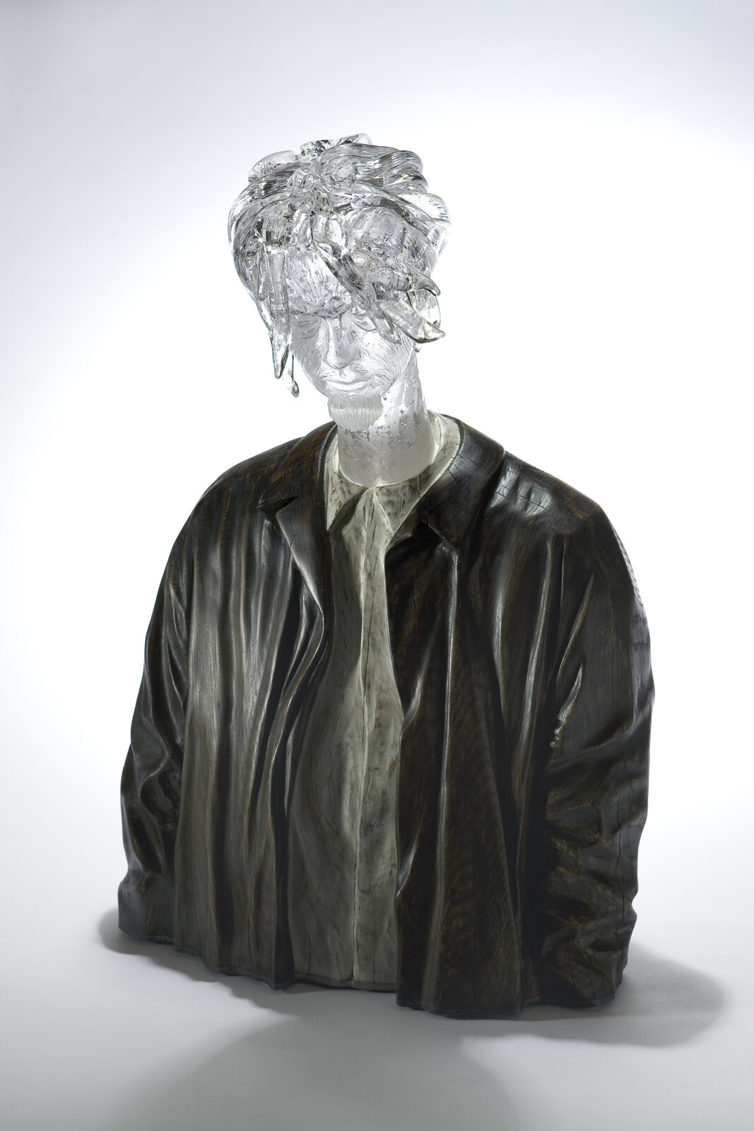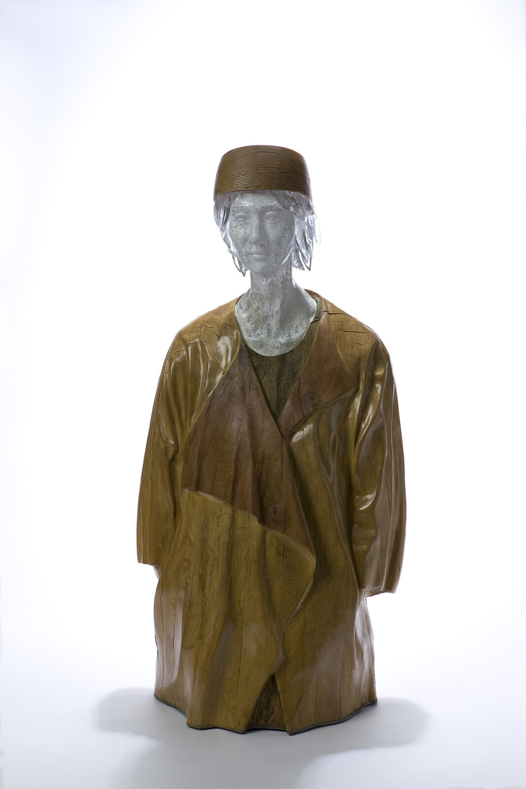 His Self-Portrait series, combining wood and glass, embodies a tension and resonance between the cold rigidity of glass and the warm organic nature of wood. These works evoke the artist’s internal landscape while reflecting the quiet tension and emotional density of contemporary life, layered with depth and subtlety.