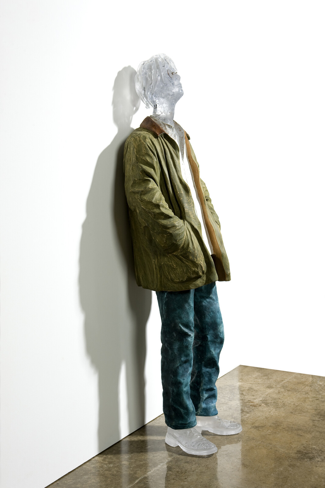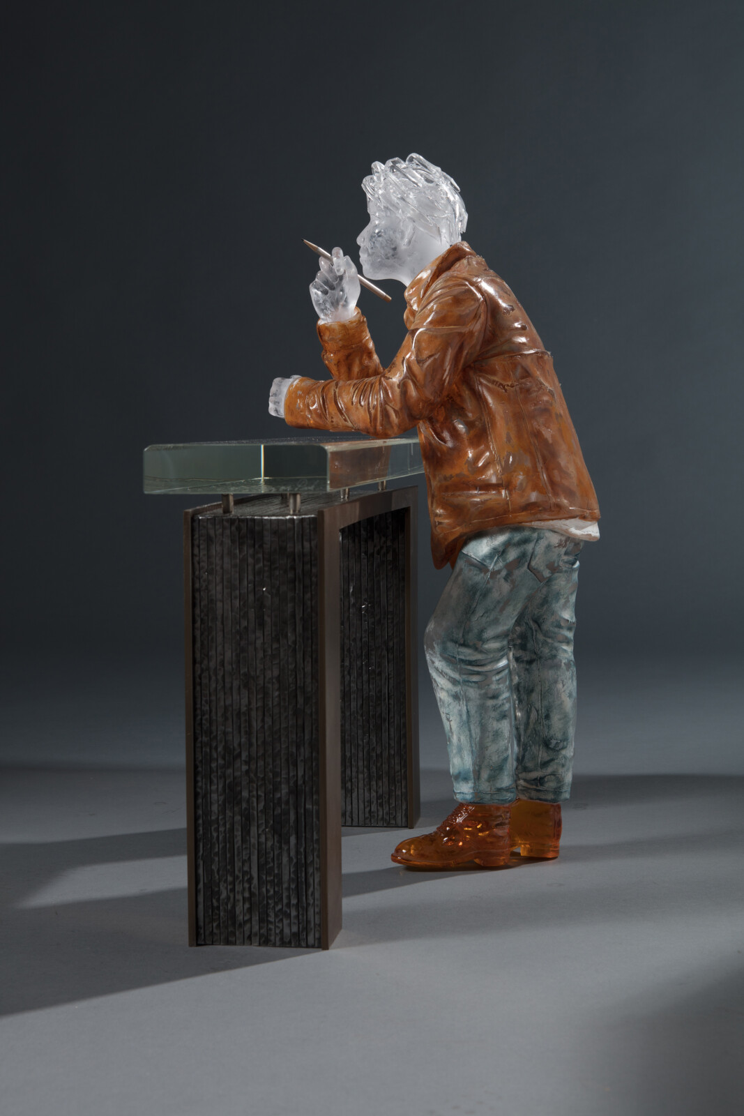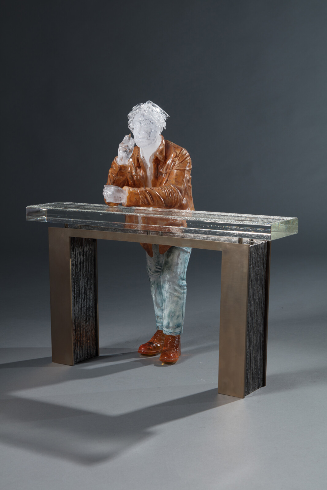 His Self-Portrait series, combining wood and glass, embodies a tension and resonance between the cold rigidity of glass and the warm organic nature of wood. These works evoke the artist’s internal landscape while reflecting the quiet tension and emotional density of contemporary life, layered with depth and subtlety.