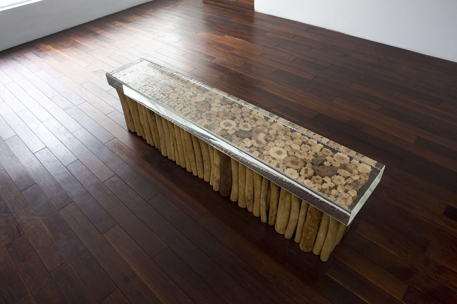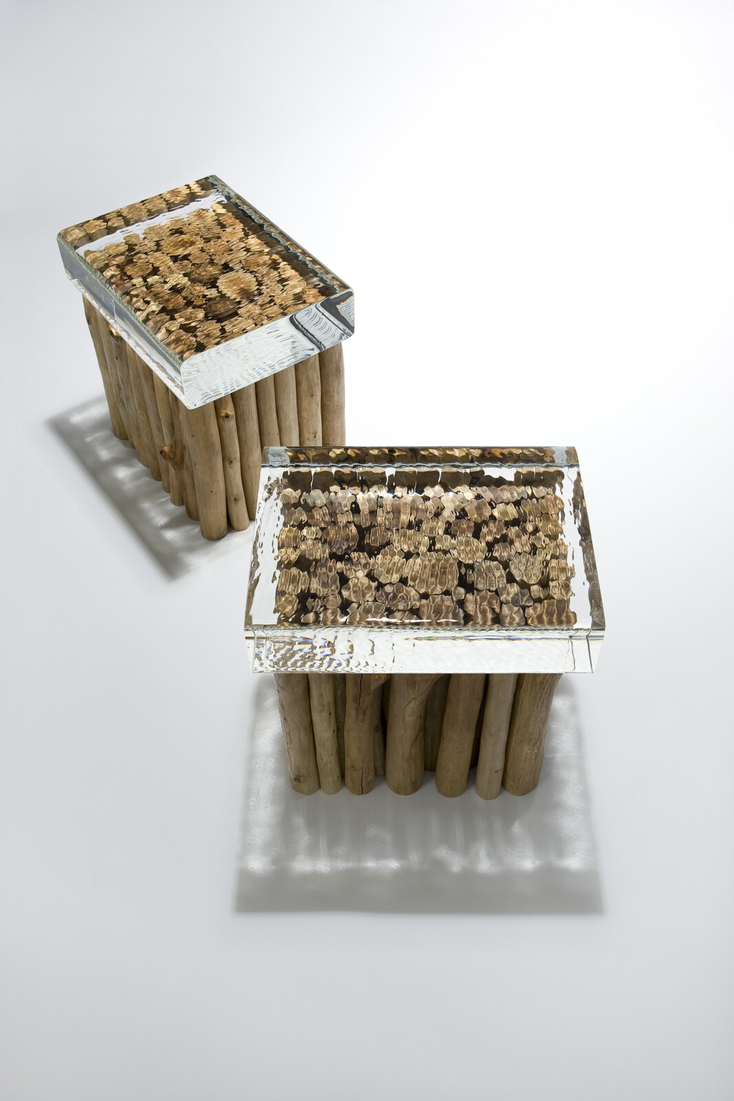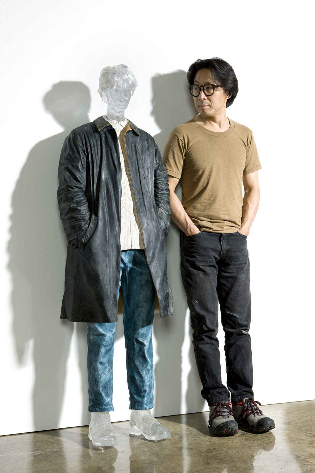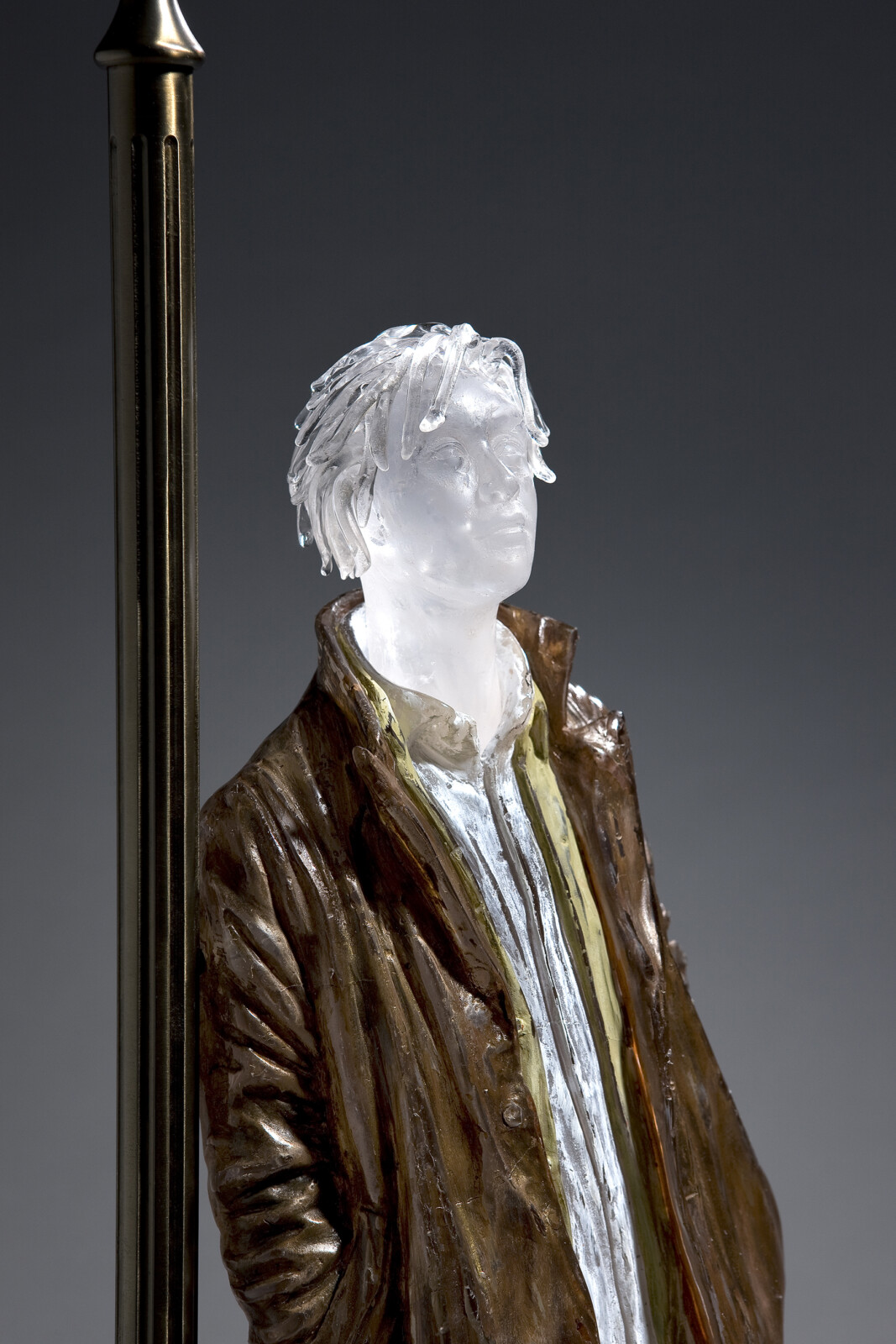 His Self-Portrait series, combining wood and glass, embodies a tension and resonance between the cold rigidity of glass and the warm organic nature of wood. These works evoke the artist’s internal landscape while reflecting the quiet tension and emotional density of contemporary life, layered with depth and subtlety.